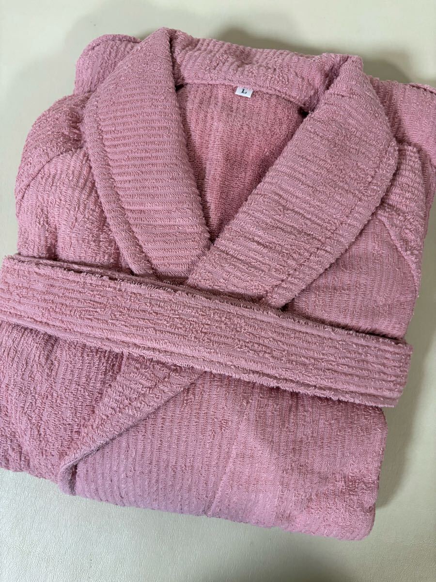 - 今治タオル 【新品】ボーダー織柄バスローブ(ピンクボーダー)フリーサイズL男女兼用