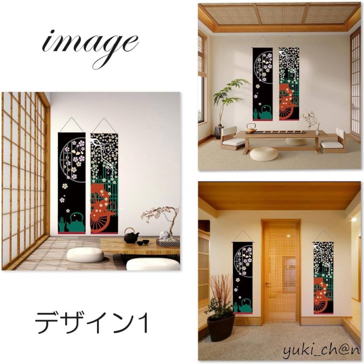 - タペストリー 掛け軸 2枚セット 壁掛け 壁面 吊るし 細タペストリー 桜 夜桜 飾り コンパクト 室内用 インテリア 和モダン 和風 模様替え