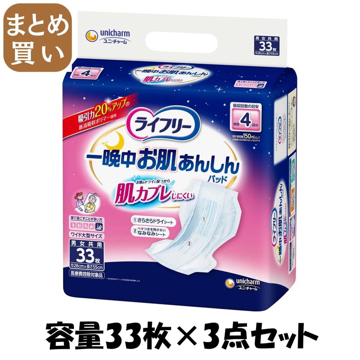 - 【まとめ買い】ライフリー 一晩中お肌あんしん尿とりパッド4回 33+3枚 容量33枚×3点セット 大人用オムツ