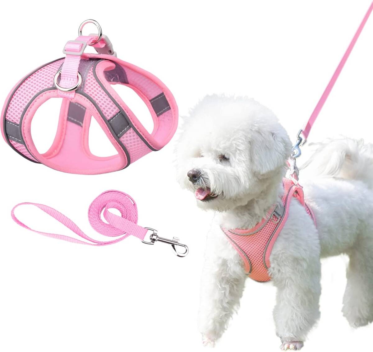 - PET ペット用ハーネス&リードセット 犬 猫 胴輪 反射光ストリップ付き 調節可能 お散歩 着脱簡単 小型犬 中型犬 (メッシュ/ピンク M)