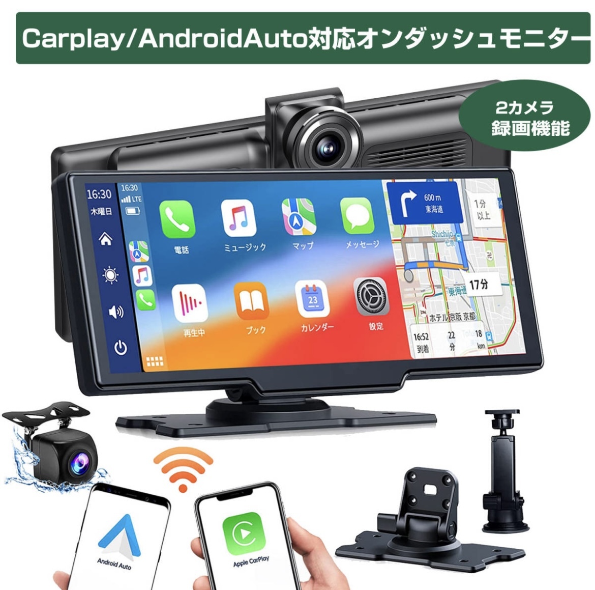 - ワイヤレスCarplay タッチスクリーンAndoroidナビ10.26インチ 前後ドラレコ付き