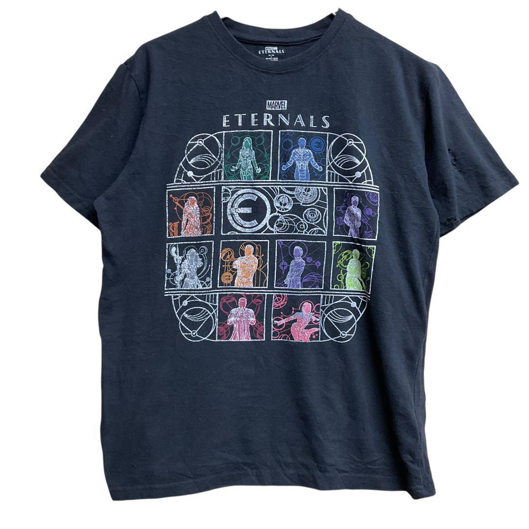 - マーベル メンズTシャツ 黒 L エターナルズ キャラクタープリント【3798】