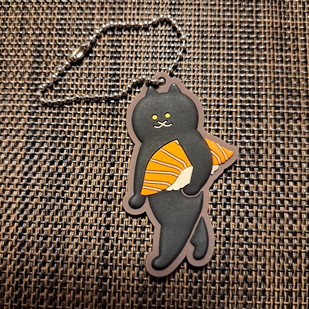 - ARTUNIV TECHNI COLOUR SUIMIN 運ぶねこ ぷっくり ラバー マスコット / サーモン握り ボールチェーン キーホルダー 黒猫 サーモン
