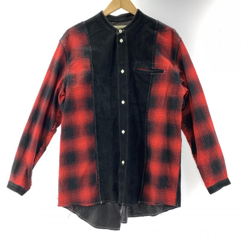 > 【中古】FORSOMEONE COMBINATION BAND SHIRT サイズ46 チェック ブラック×レッド 78000052[240019438825]