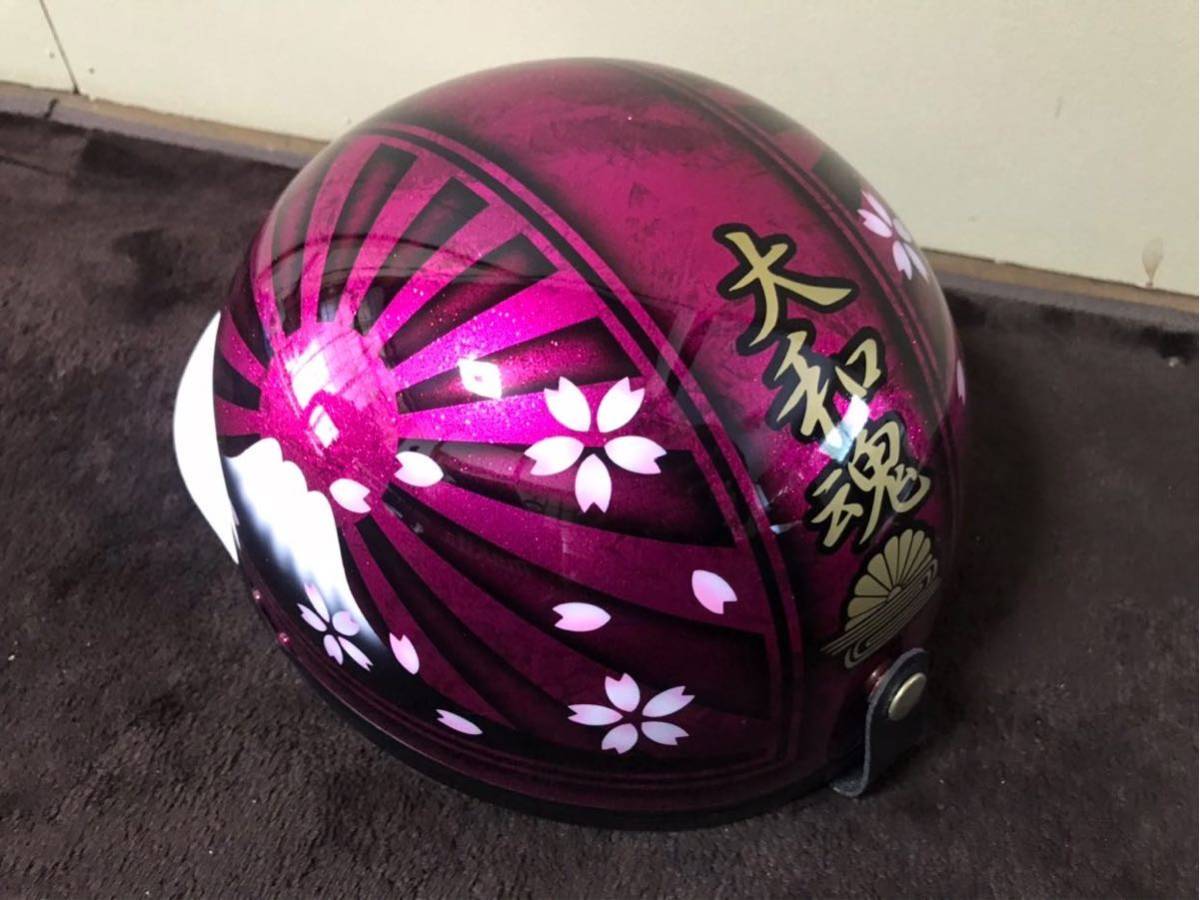 - 桜 ラップ塗装 富士日章 コルク半 ヘルメット 旧車會 暴走族 三段シート アルフィン ロケットカウル 旭風防 短風防 半キャップ ゼファーχ
