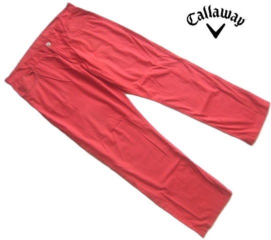 - 美品!!キャロウェイ Callaway*ロゴタグ付き 5ポケット ストレッチコットンパンツ LL 赤 レッド ゴルフ GOLF XL 大きいサイズ
