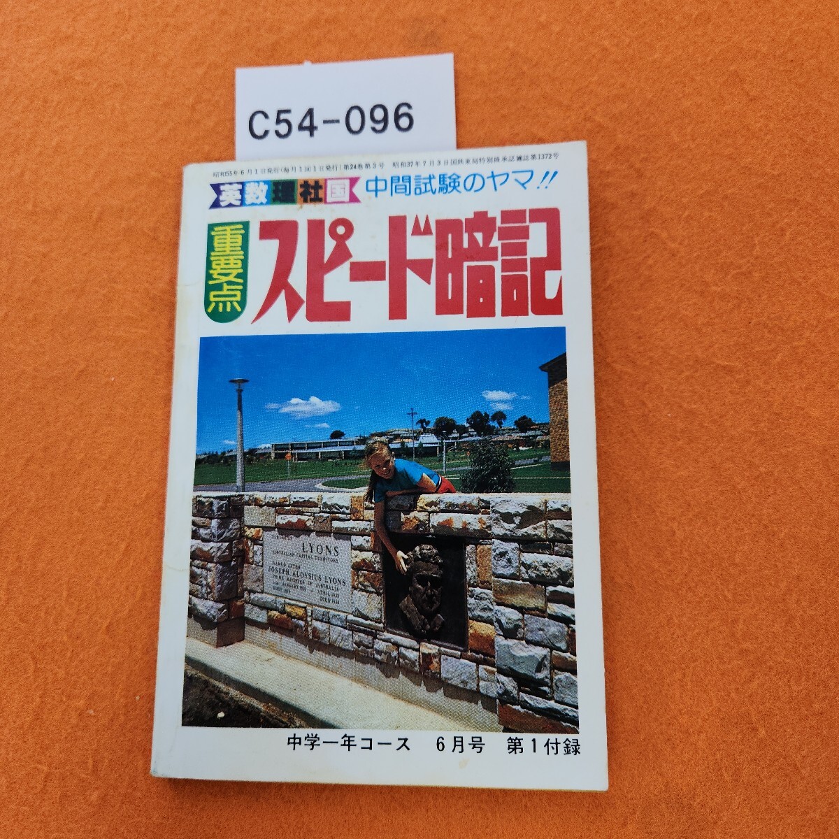 - C54-096 重要点 スピード暗記 学研 中学一年コース 6月号第1付録 昭和55年6/1発行