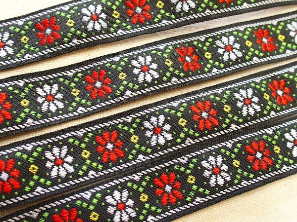 - 即決 ! 0.5mより チロリアンテープ 黒 花☆ ハンドメイド 手芸資材 インド刺繍リボン