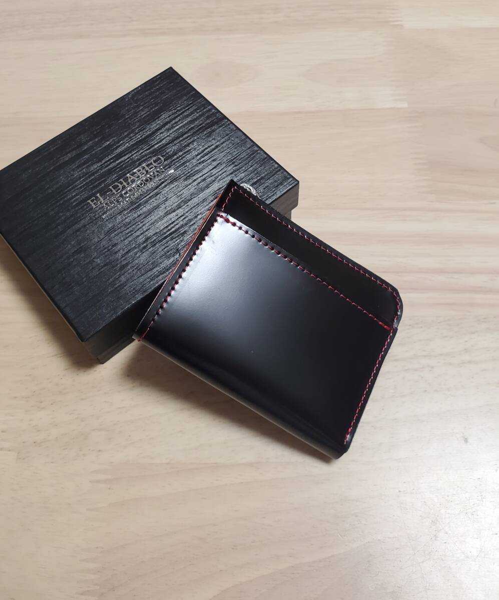- 新品 未使用 美品 EL-DIABLO ラウンド財布 短財布 メンズ 折り財布 ファスナー 本革 革 コードバン 栃木レザー 日本製 ブラック レッド