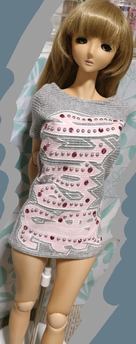 - ハンドメイド ロングTシャツ ワンピース オビツ50cm用