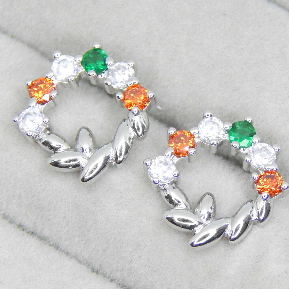 > 新品★送料無料 マルチカラー リース CZダイヤモンドピアス レディースシルバー925刻印 カラーストーン 宝石 ジルコニア イヤリング化可