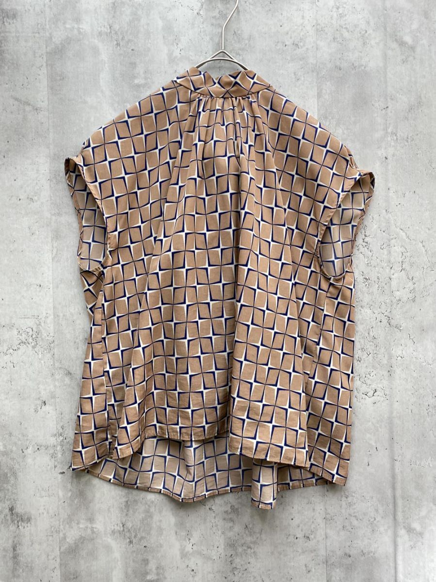 - ゆうパケットOK AuieF アウィーエフ 総柄 ノースリーブ ブラウス シャツ size38/茶 ■◆
