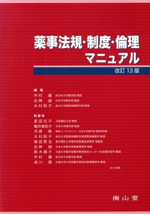 - 薬事法規・制度・倫理マニュアル 改訂13版/恩田光子(著者),中村健(編者),白神誠(編者