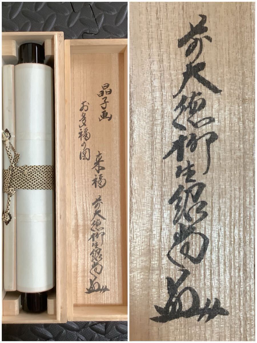 > 【模写】掛軸Ma750B[柳生紹尚賛 晶子画 お多福画賛紙本 書いたもの 共箱/仏画 仏教美術 前大徳 臨済宗芳徳寺住職 茶掛 茶道具