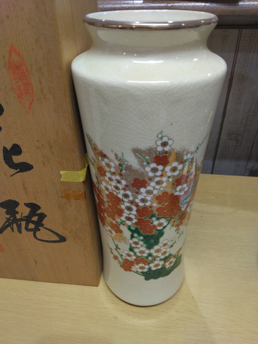 - 陶器 花瓶 梅花 高さ31cm 口径9cm 和風インテリア 花器 花入 アンティーク