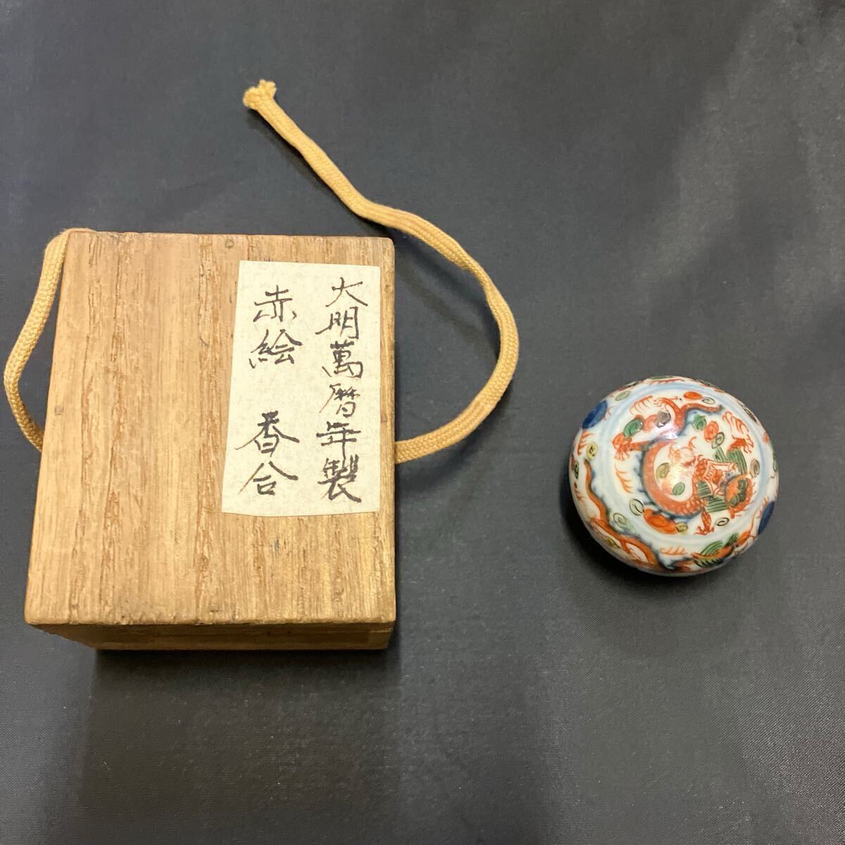 - 時代物 赤絵小丸香合 大明萬暦年製銘