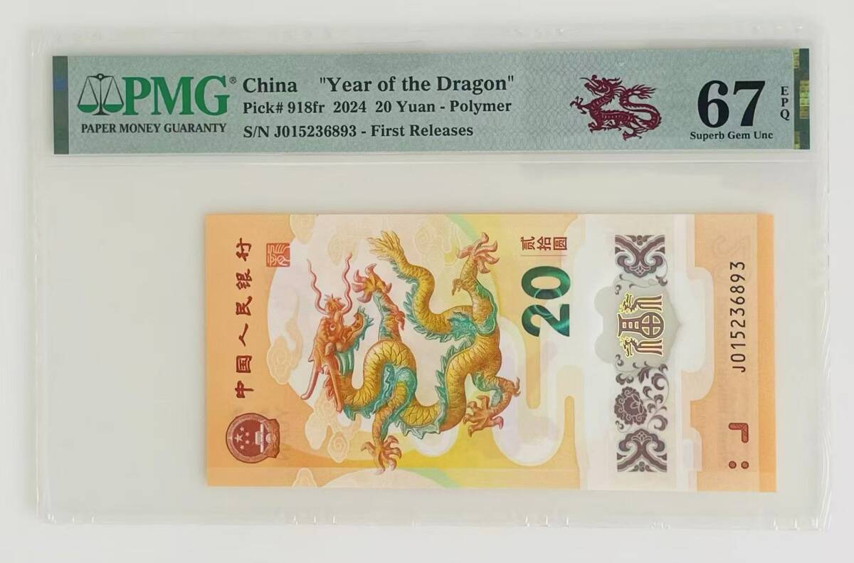 - 中国紙幣・2024年 中国龍記念紙幣・20圓 20円・PMG高鑑定
