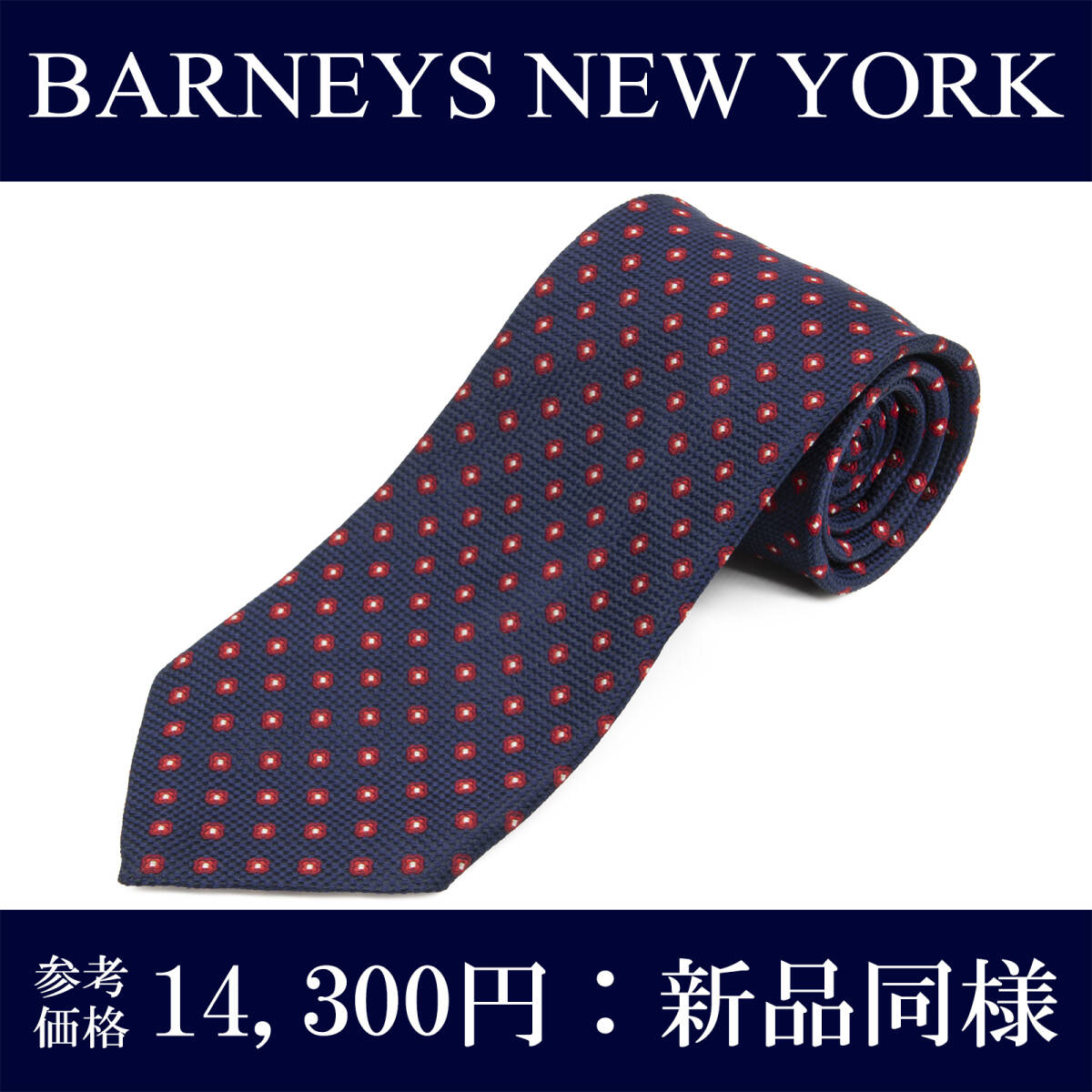 > 送料無料 バーニーズニューヨーク ネクタイ レギュラータイ ジャガード 新品同様 ネイビーブルー 赤 白 花 ブランド イタリア製 綺麗 N981