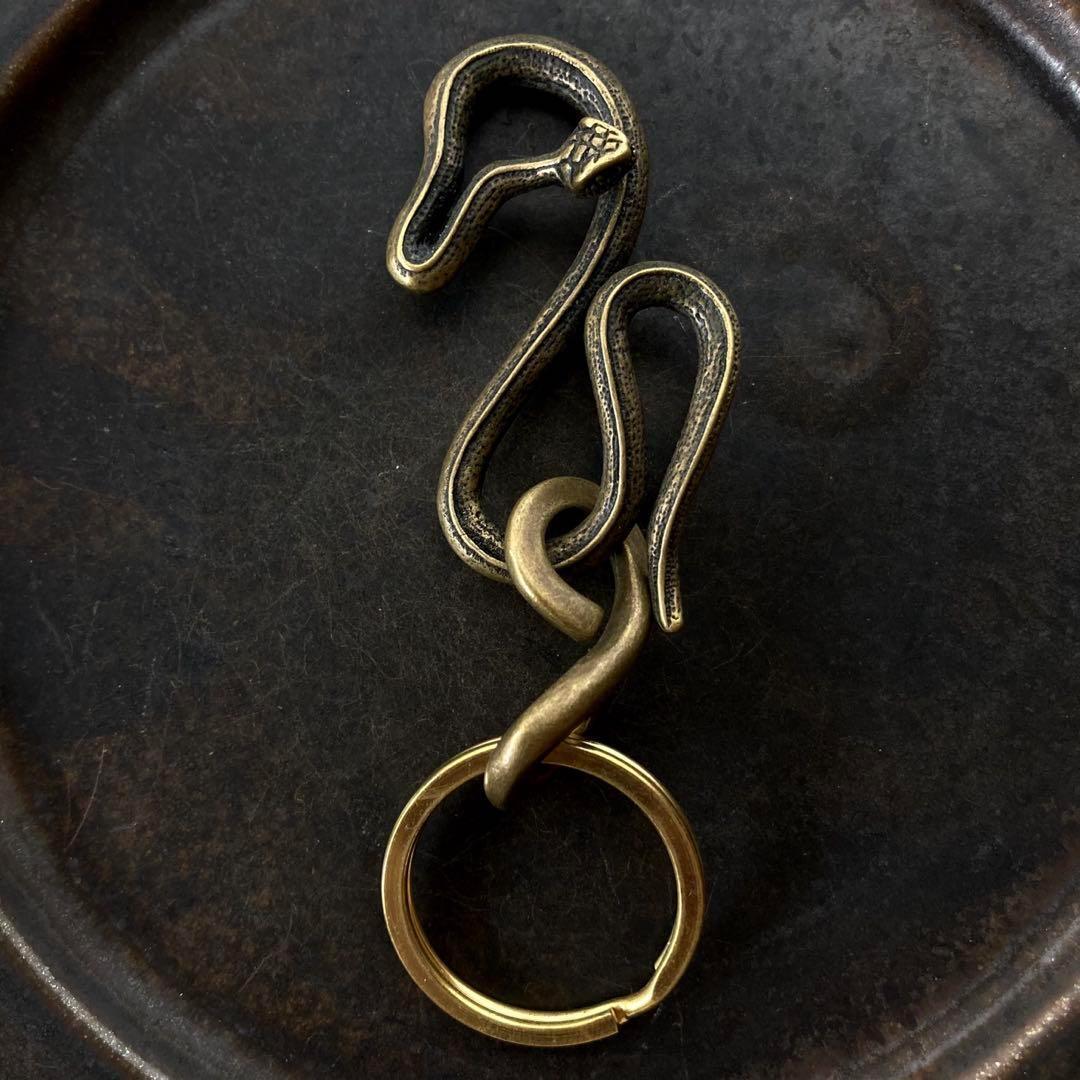 - 207 真鍮 キーホルダー キーリング キーフック フック 蛇 ヘビ ビンテージ レトロ アンティーク アクセサリー パーツ ハンドメイド