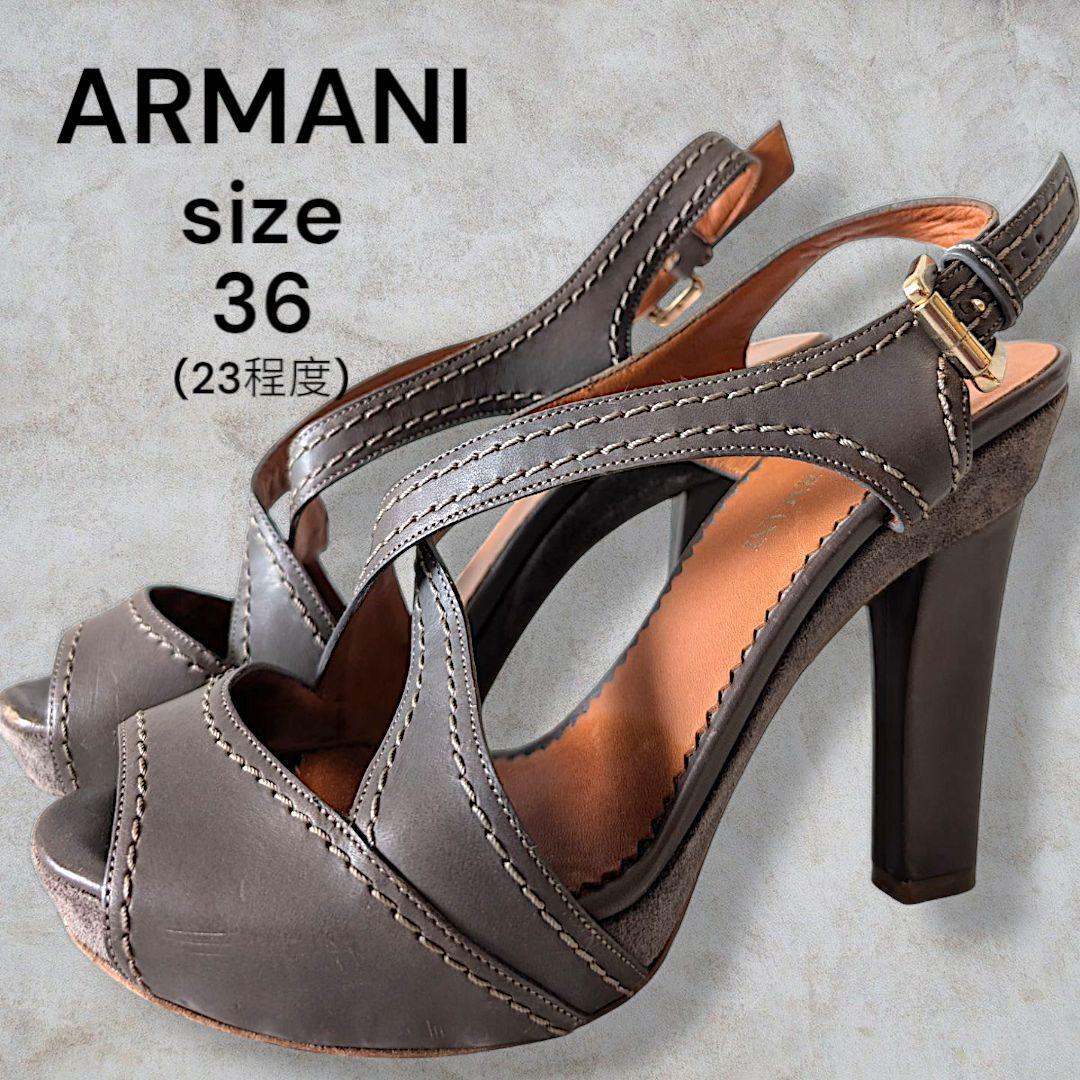 - ARMANI アルマーニ サンダル ミュール ヒール グレー レザー 23程度 レディース 婦人靴 人気ブランド 可愛い 底上げ
