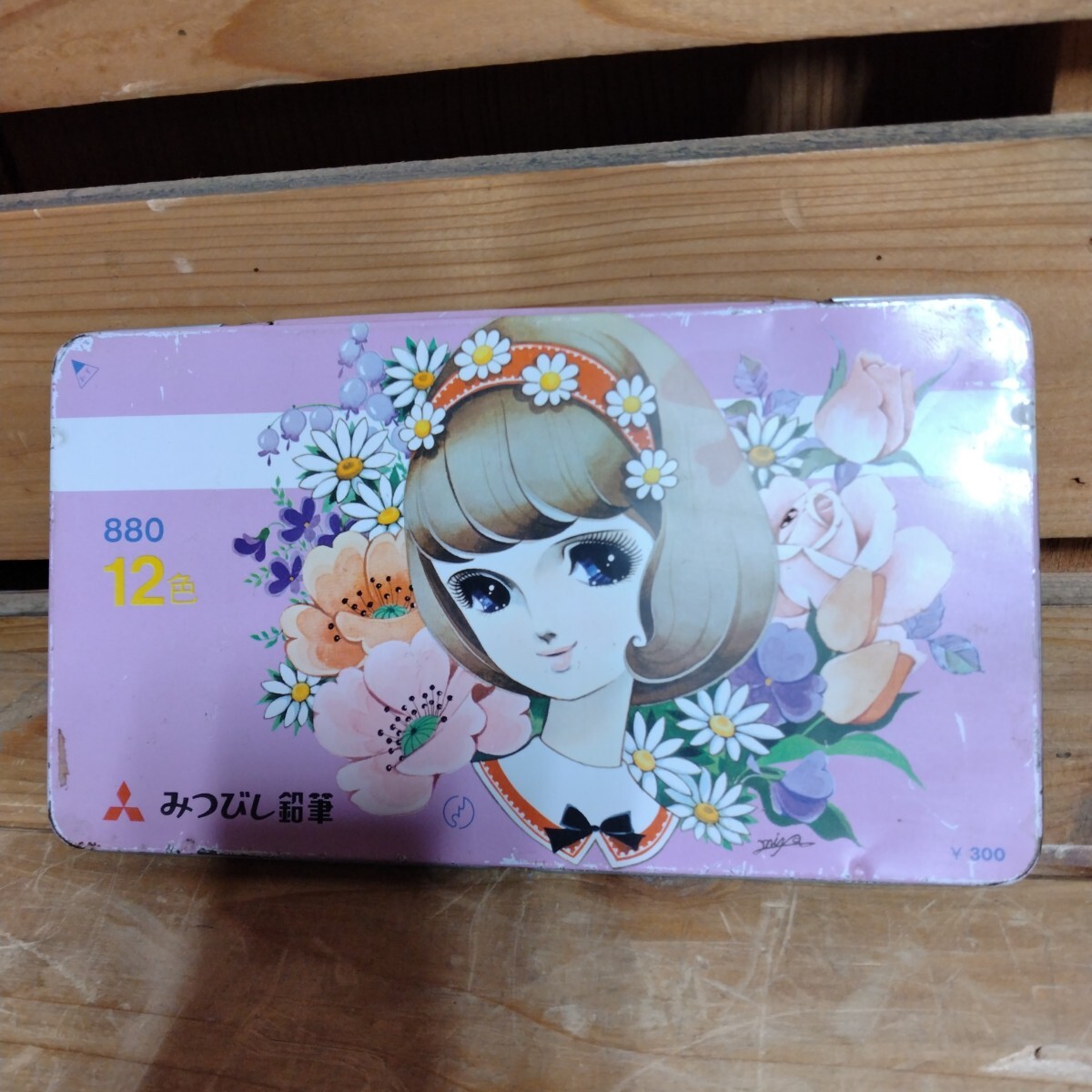 - 昭和レトロ 牧美也子/色鉛筆缶ケース 三菱鉛筆 みつびし鉛筆 12色 缶ケースのみ 昭和レトロ文房具