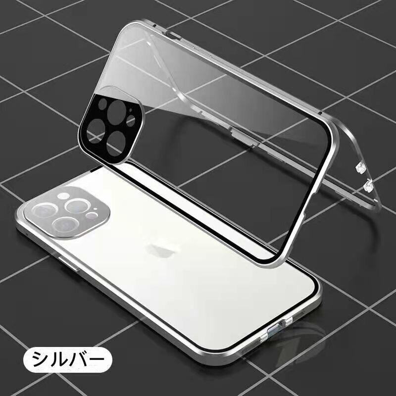 - iPhone 13mini シルバー ダブルロック付 強化ガラス レンズカバ一体型 アルミ 耐衝撃 iPhone11 12 13 14 15 16 Pro max mini Plus ケース