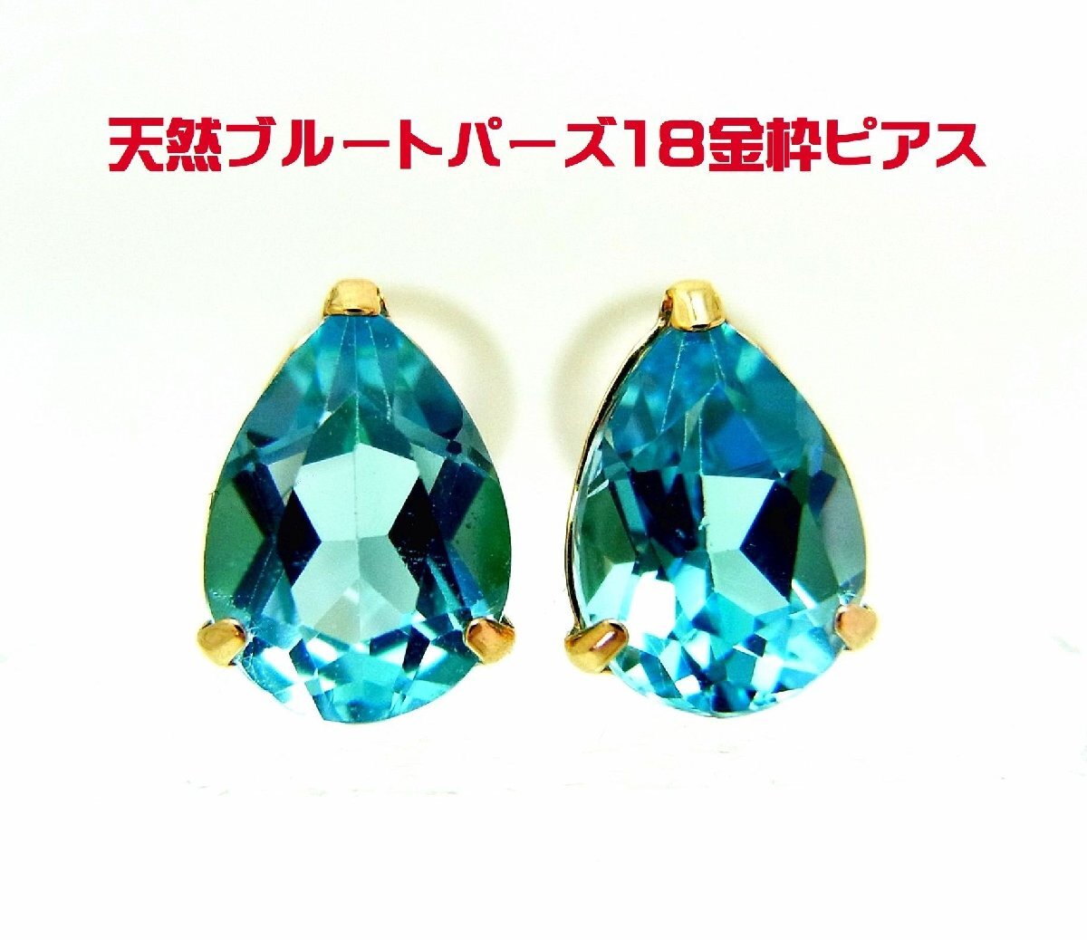 - とても綺麗な天然ブルートパーズ 涙型一粒石 ピアス 18金イエロー製枠 卸価格 紹介動画 送料込み