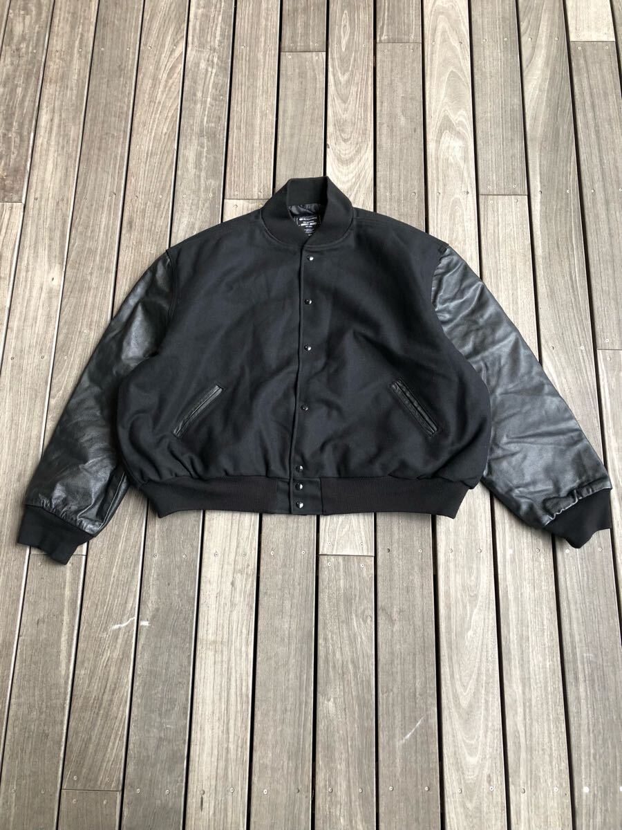 > 美品 HOLLOWAY VARSITY JACKET アームレザー スタジアムジャケット 5XL XXXXXL 黒 オールブラック 革質良し 良品です