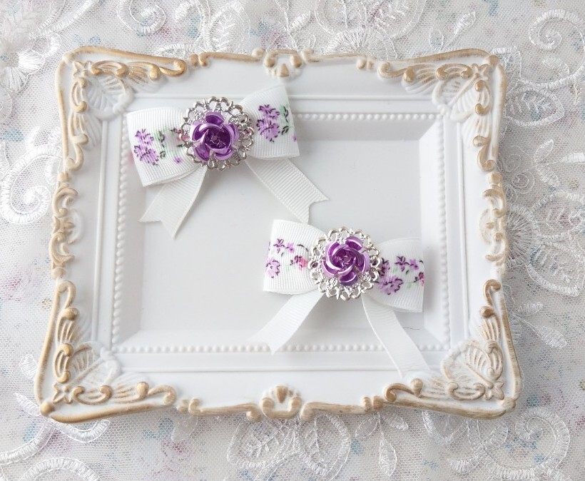 - *幼SD~SD等 1/6~1/3サイズ ドール用 ヘアクリップ ヘアアクセサリー ヘアリボン 2点セット*【Violet Rose】