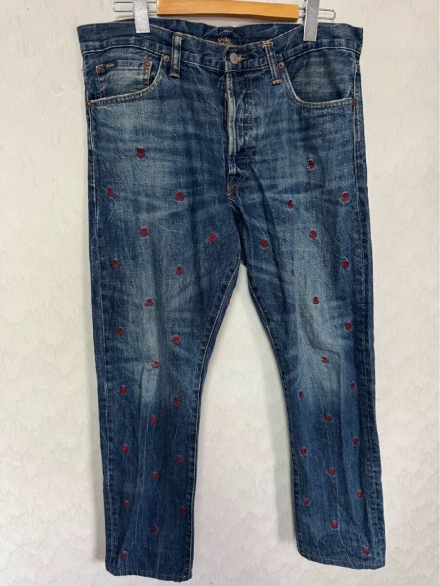 - ポロラルフローレン ジーンズ デニム スカル ドクロ 刺繍 W34L32 スリム SULLIVAN SLIM