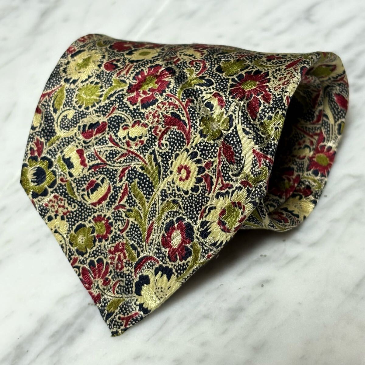 - 【未使用に近い】 999円~ gm ネクタイ ダークネイビー ボタニカル柄 マルチカラー (B3)