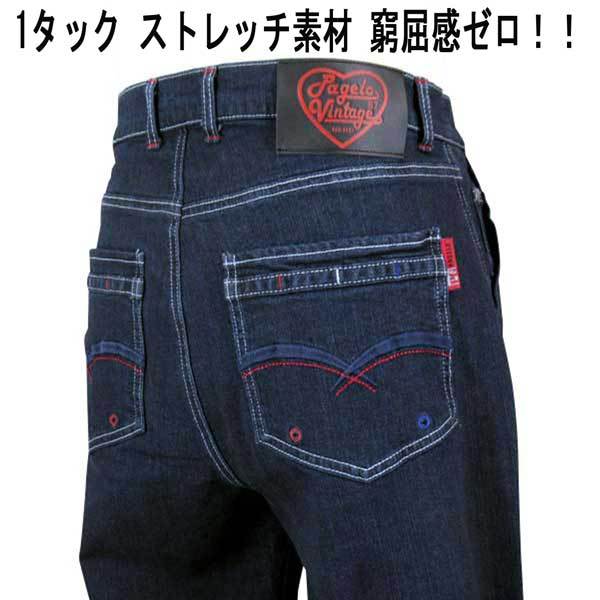 - パジェロ バックポケット部分刺繍デニム1タックパンツ・紺 82
