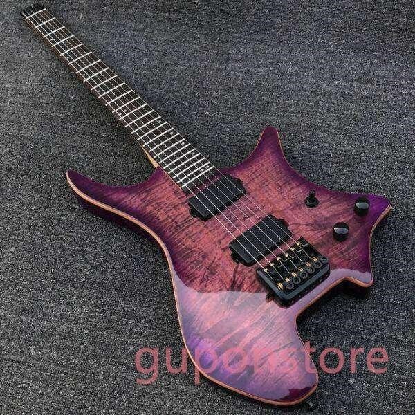 > エレキギター 本体 ハードケース付き 紫 光沢仕上げ マホガニー合板 34インチ ヘッドレス ハード ロック バンド