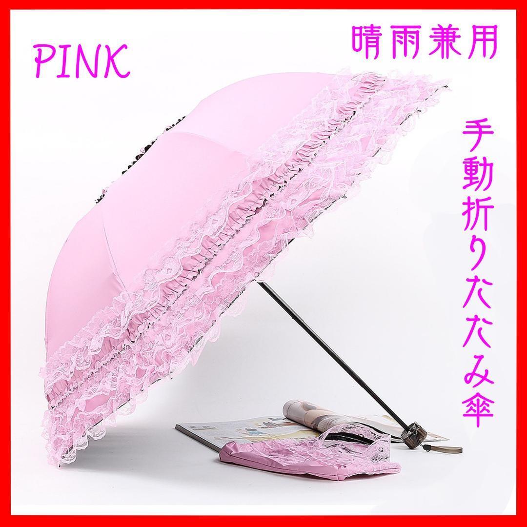 - A388 【人気商品】折り畳みUVカット日傘 ピンク 晴雨兼用