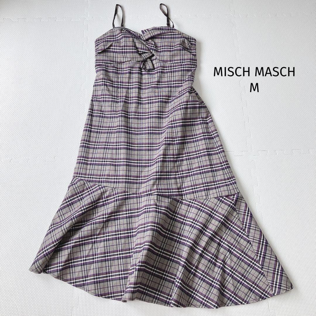 - ミッシュマッシュ ウール混 膝下丈キャミワンピース チェック柄 M