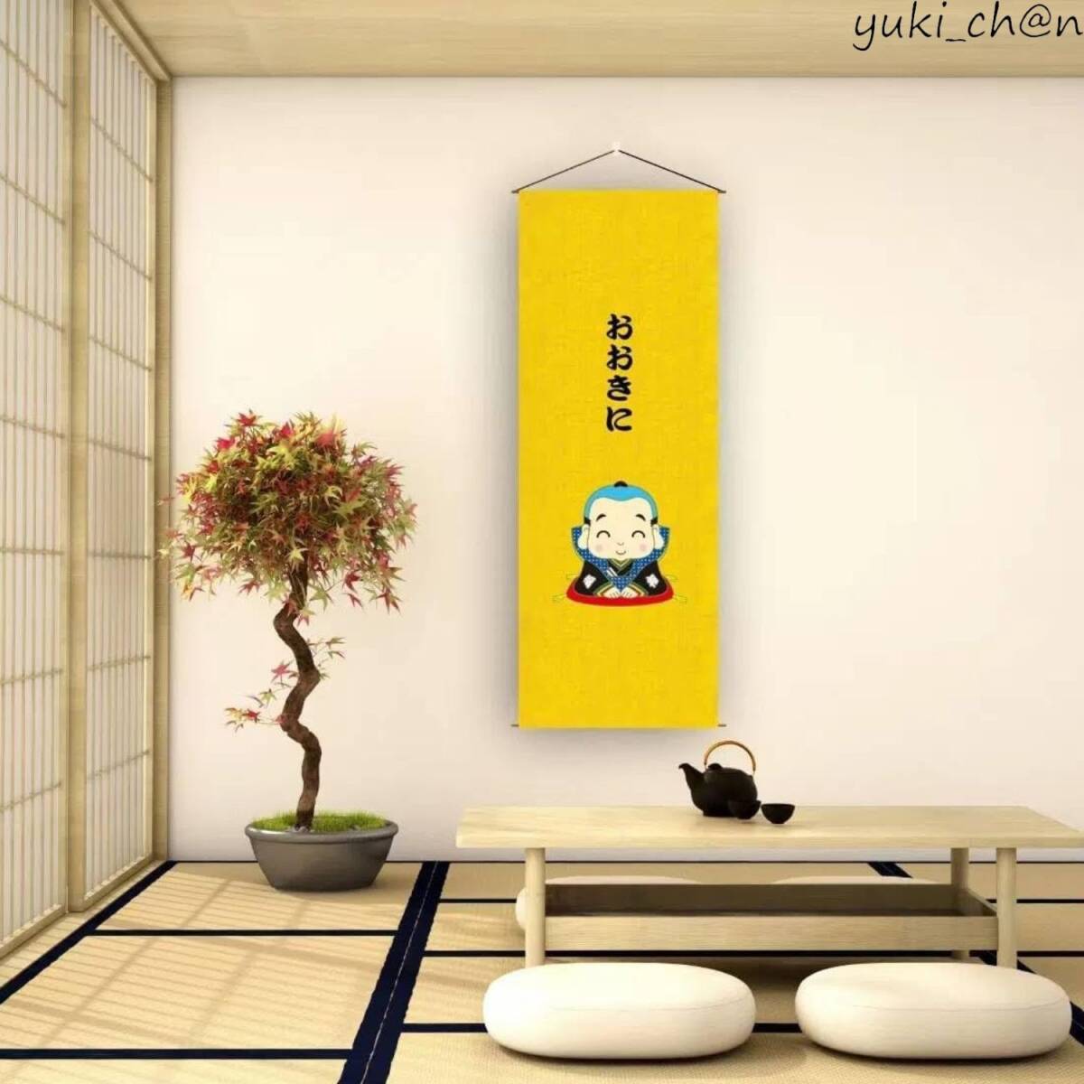 - タペストリー 掛け軸 床の間 細タペストリー 和モダン 縦長 掛け物 幅40cmx丈120cm 模様替え 小さなお坊ちゃん インテリアアート 部屋飾り