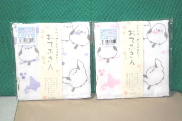 - 北海道 シマエナガ おてふきん ふんわりガーゼの八枚重ね ピンク、パープル 2枚セット Sara ハンカチふきん 日本製 綿100% 約28cm×28cm