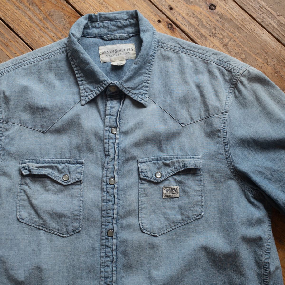 - USA古着 Denim&Supply デニム&サプライ 半袖シャツ メンズ Mサイズ ライトブルー ポケット ウエスタン カジュアル デニサプ T3028