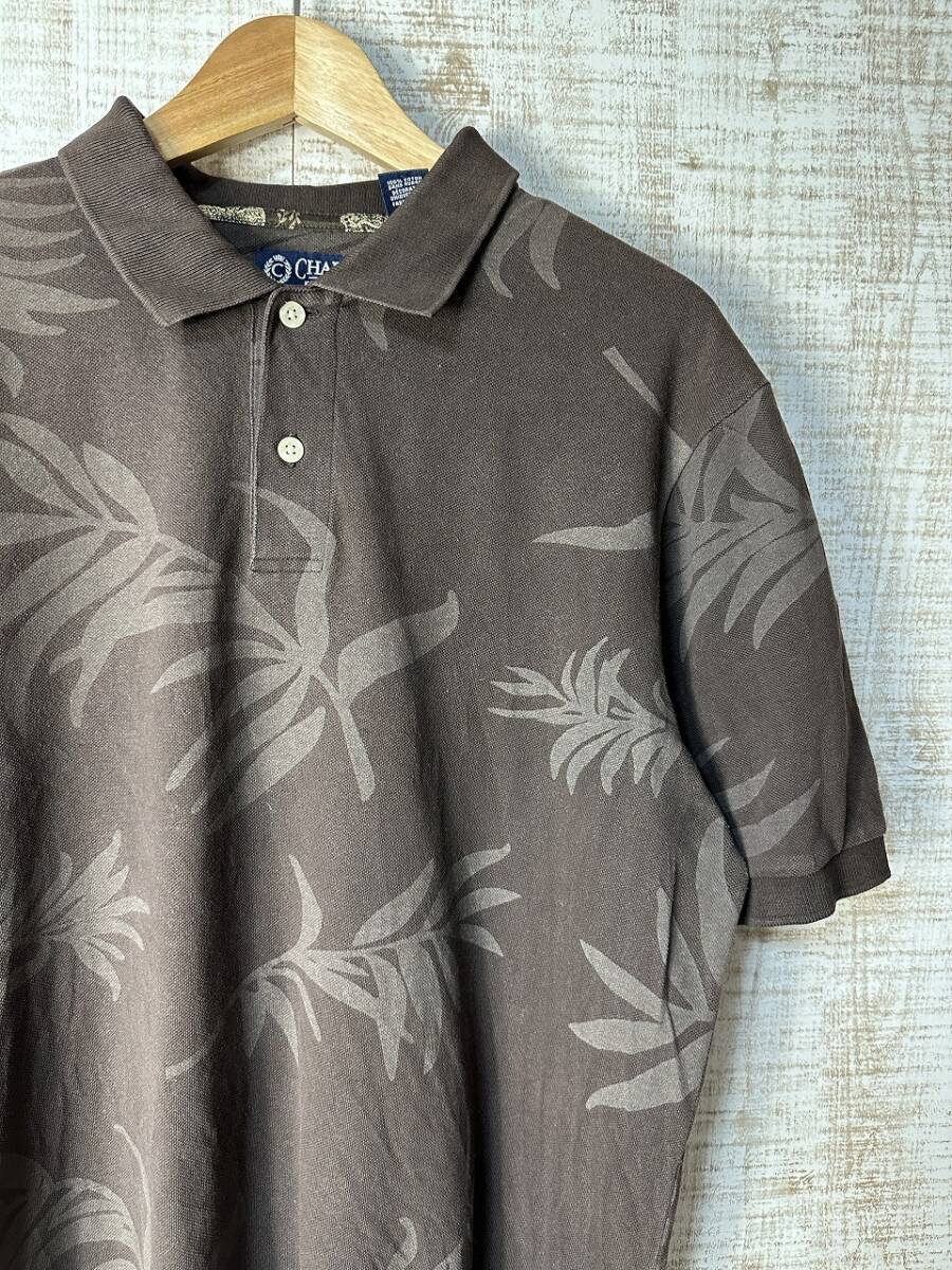 - ☆US古着 CHAPS チャップス ラルフローレン ポロシャツ 半袖 ボタニカル柄 総柄 ブラウン茶【M】鹿の子コットン ◆4937◆