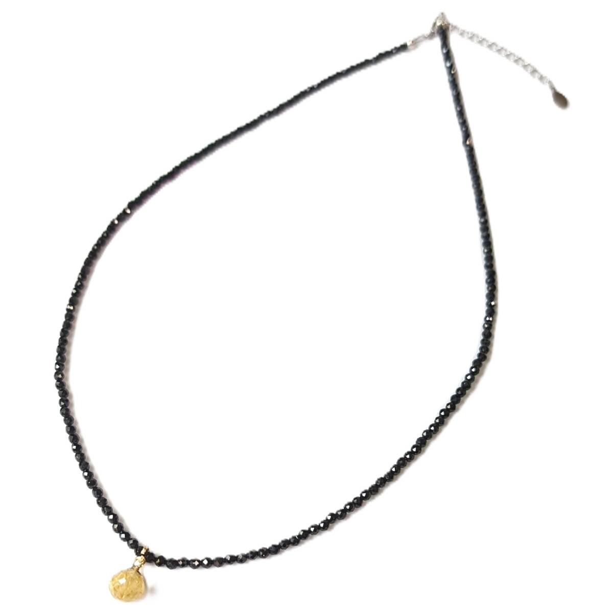 - ゴールドルチルクォーツ チャーム ブラックスピネル ネックレス 漆黒に光り輝く パワーストーン アジャスター付 長さ調節可能 芸能人も愛用
