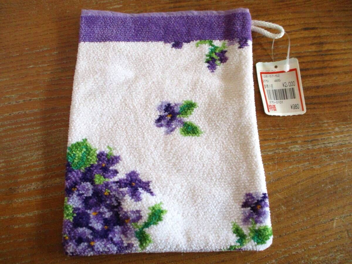 - 【未使用・タグ付・送料込】FEILER フェイラー 鍋つかみ タオル地 シュニール織り 花柄 白×紫 ドイツ製 ミトン キッチンアイテム 雑貨