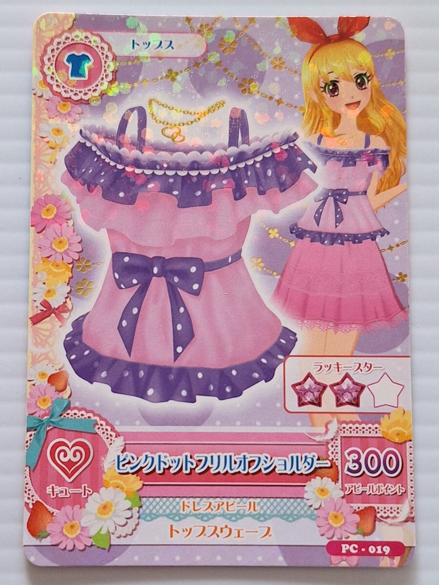 - ★アイカツ ピンクドットフリルオフショルダー PC-019 未使用に近い★
