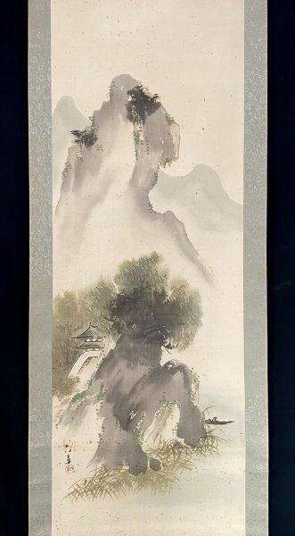 - CM2605[真作]井波六華「山水図」掛軸 絹本/明治-昭和期の日本画家 金沢の人