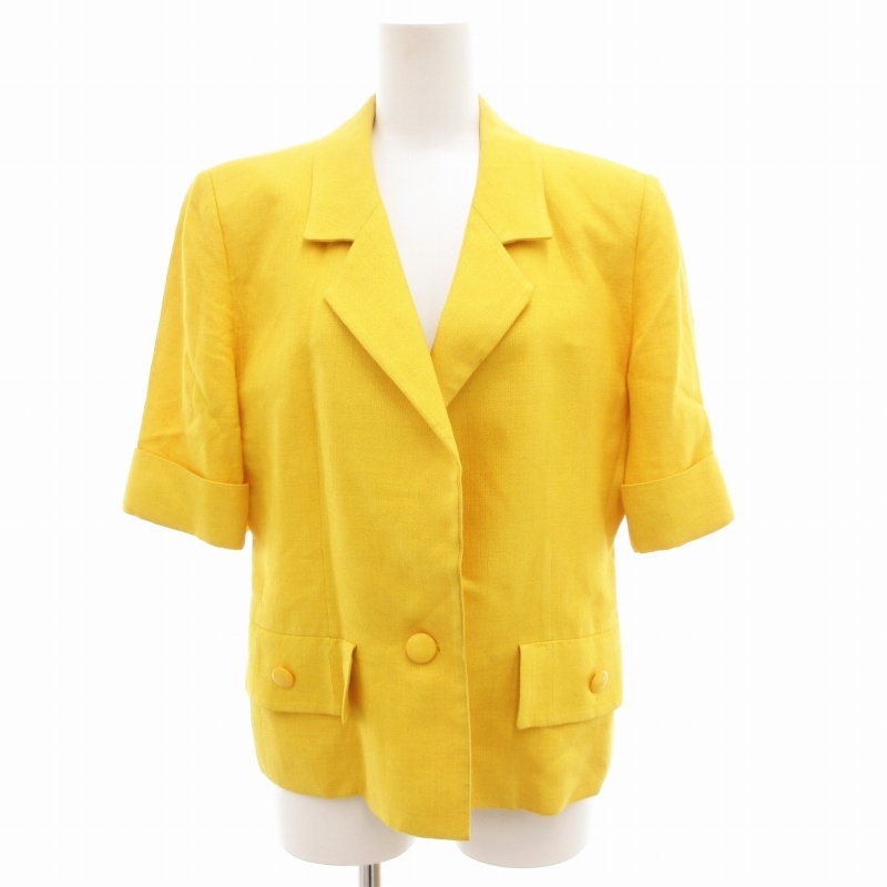 > ニナリッチ NINA RICCI テーラードジャケット ブレザー 半袖 シングル 背抜き リネン混 9 黄 イエロー /GV ■GY99 レディース