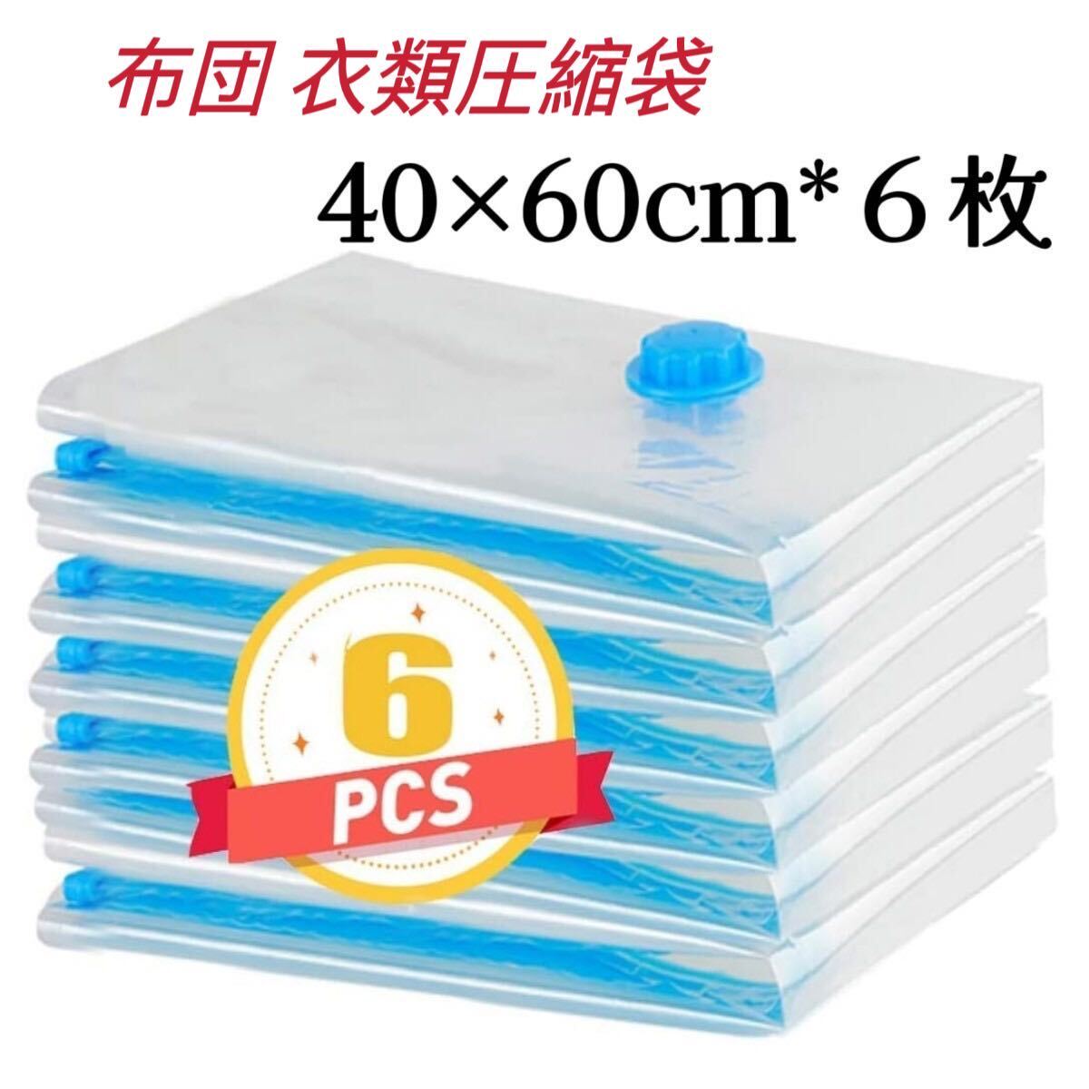 - 圧縮袋 【40×60cm 6枚組】 布団 衣類圧縮袋 ふとん圧縮袋 掃除機対応 防虫防カビ 防塵防湿 収納 衣替え 旅行 押入れ収納 繰り返し使用出来