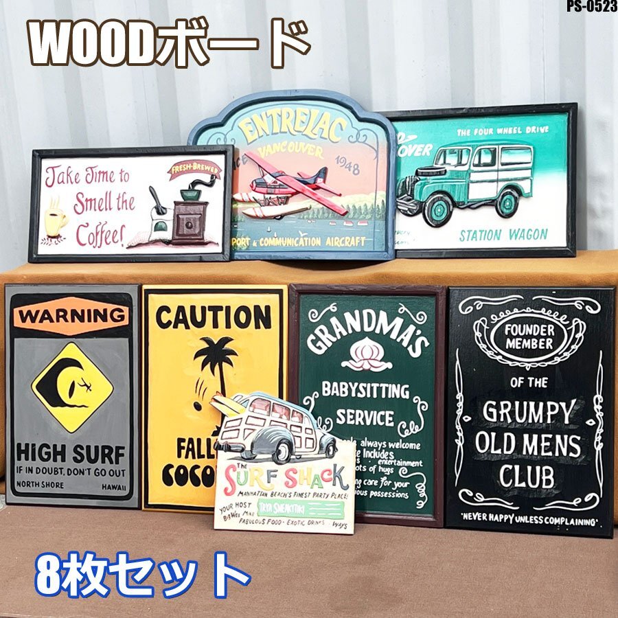- Hwaii ウッドボード 8枚セット カフェ インテリア アメリカン 看板 cafe ハワイアン ヴィンテージ 雑貨 オシャレ ◇PS-0523