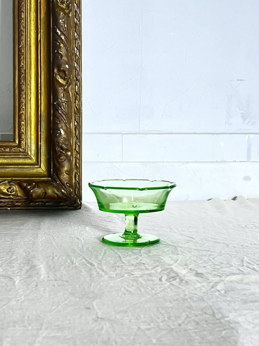 - M3075【ウランガラス】氷コップ プレスガラス アンティーク 和ガラス アイスクリームグラス カフェ 昭和レトロ 大正ロマン