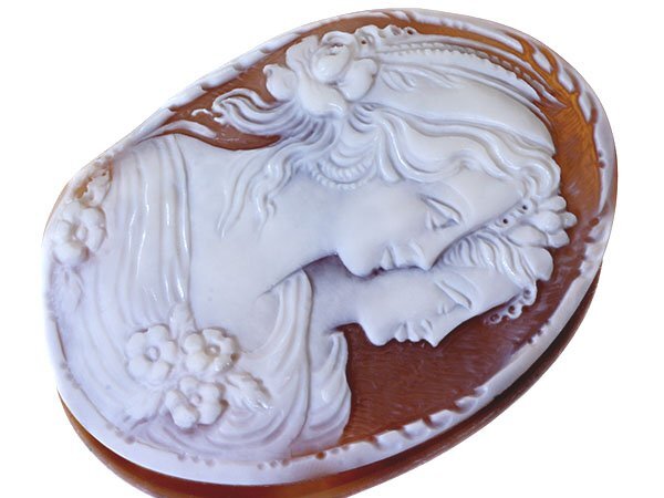 - 【ジュエリー極】作家品 裏面サイン有 美しい2人の貴婦人と花の彫刻 高級シェルカメオルース 65.3mm×48.1mm w5345vlm【送料無料】