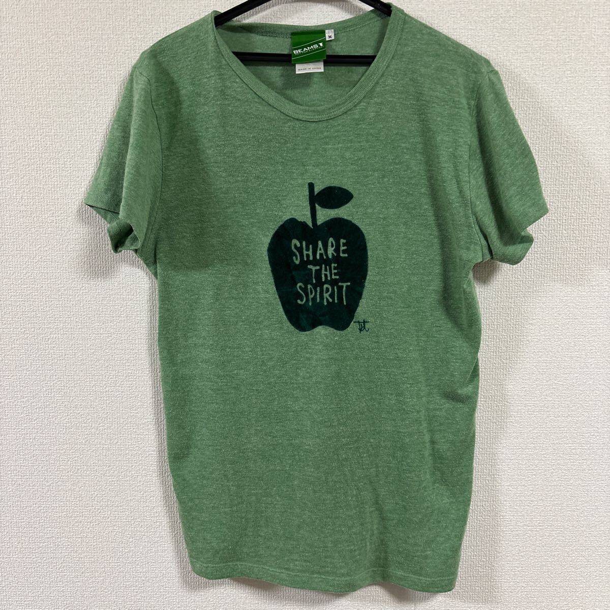 - Tシャツ 古着 半袖 緑 BEAMS M SHARE THE SPIRIT りんご