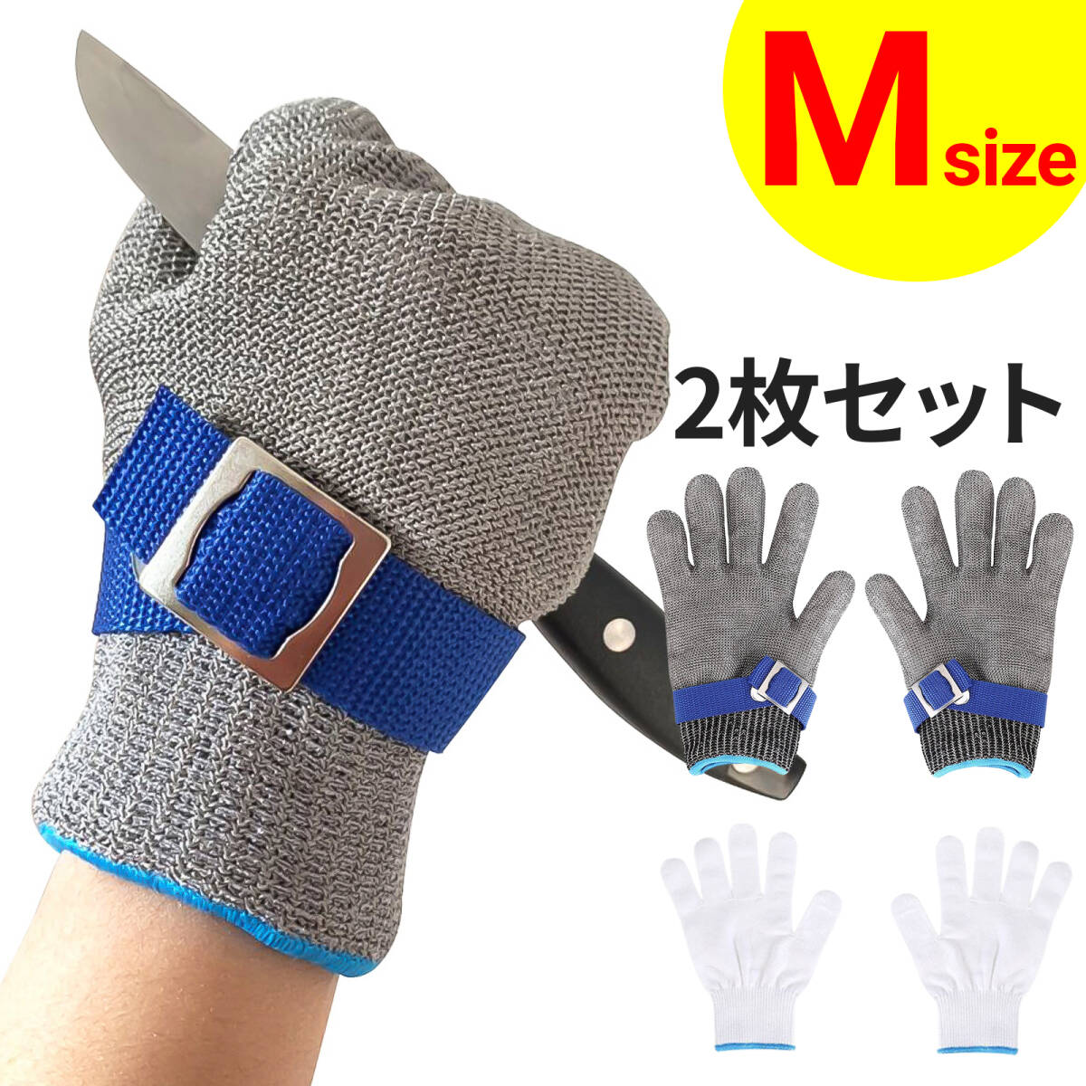 - 切れない 防刃 手袋 グローブ Mサイズ ステンレス 鋼線 耐切創 レベル5 左右兼用 防護 作業用 調整ベルト付き ズレ防止 綿 作業手袋付き